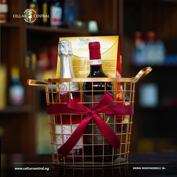 Classic Hamper contains Cognac, Red wine, Sparkling wine, Whisky and Chocolate